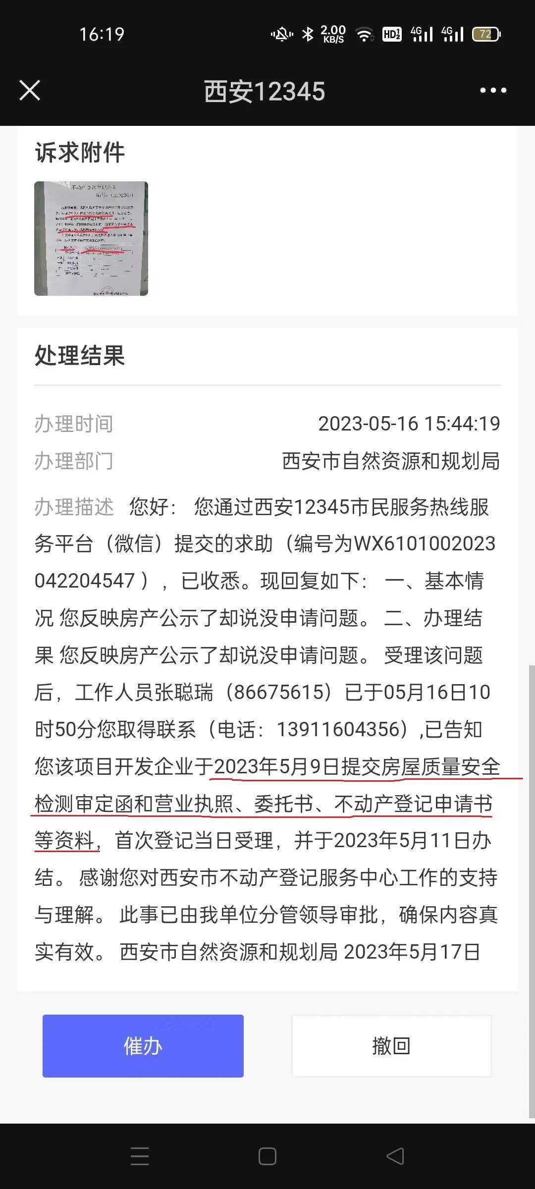 3、入住近10年以来,特别是列入“处遗”以来,该公司承诺配合政府和业主推进处遗工作的事项,没有一次如期和不打折扣的兑现过。由此引发过多次的群众性聚集上访,浪费了大量的行政资源,带来了很大的社会不安定性因素。比如,办不动产首次登记(大证)时,该公司向区处遗办承诺在公告期间提交办证申请和有关资料;结果4月4号公告,4月18号公告期满,而该公司5月9号才提交申请和资料,造成业主群众极大不满,西安市不动产登记中心工作被动。