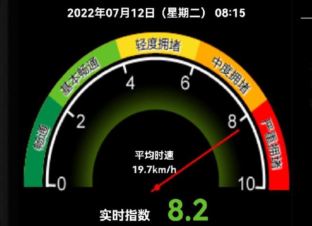 截至今早8点15分,北京交通指数达到8.2,处于严重拥堵级别。北京市交通委官网截图