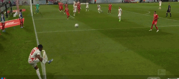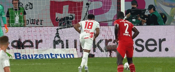 第89分钟,莱比锡快速反击,奥尔莫禁区左侧右脚低射入网,4-3!