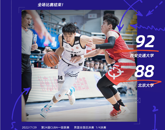 也祝贺西安交大逆袭北大,时隔18年重返CUBA四强,期待他们接下来的表现,争取可以在卢杜伟和赵晨曦带领下取得好成绩。