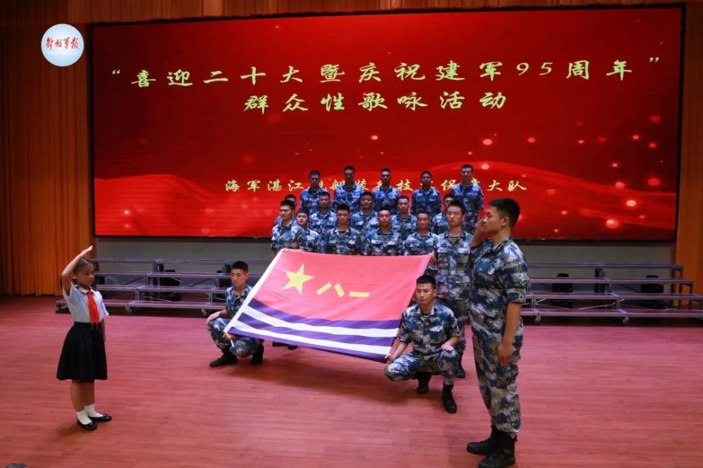 “八一”合唱比赛中,一个小女孩主动向官兵们行了少先队队礼,并说:“等我长大了也要当一名军人,也要保护别的小朋友!”