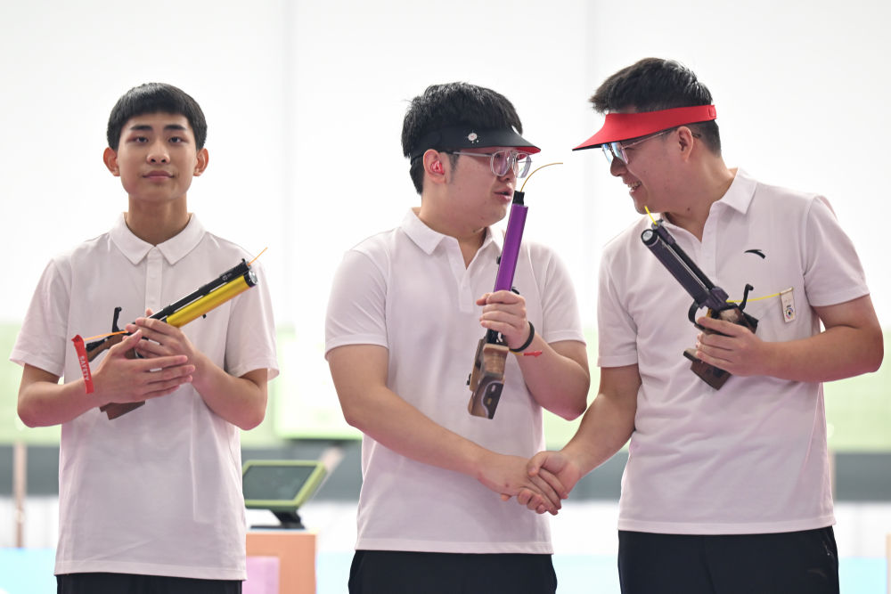 当天进行的其他项目中,安徽队在名将胡凯的带领下以16:6击败河北队,夺得男子10米气手枪团体冠军,吉林队拿到铜牌。女子10米气手枪个人决赛则爆出冷门,广西选手唐晓以240.3环摘金,湖北队阮梦颖与奥运冠军、上海队姜冉馨分获银牌和铜牌。