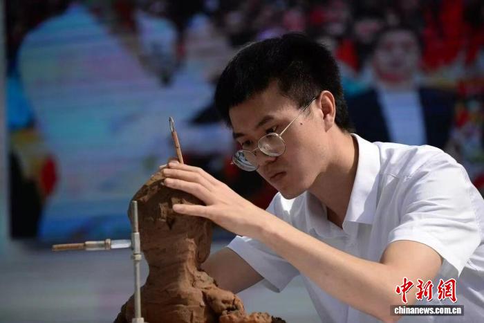 中新网陕西宝鸡10月14日电 (李一璠)在陕西宝鸡的凤翔泥塑传习所,“90后”凤翔泥塑“守艺人”胡锦伟指尖翻飞,陶土渐渐有了灵韵。这位返乡创业的大学生,正以青春创意为笔,以传统手艺为墨,“捏”活凤翔泥塑这门古老技艺,努力为家乡铺就一条文化致富路。