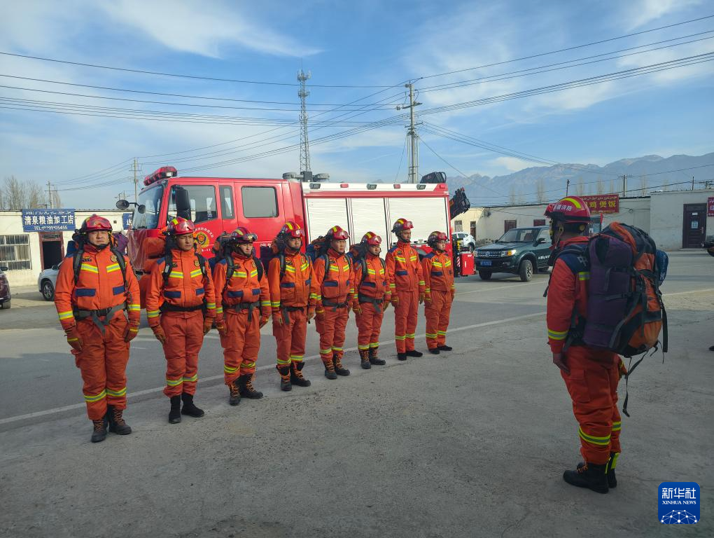 12月4日,新疆阿合奇县消防救援大队集结人员,准备前往震中。新华社发